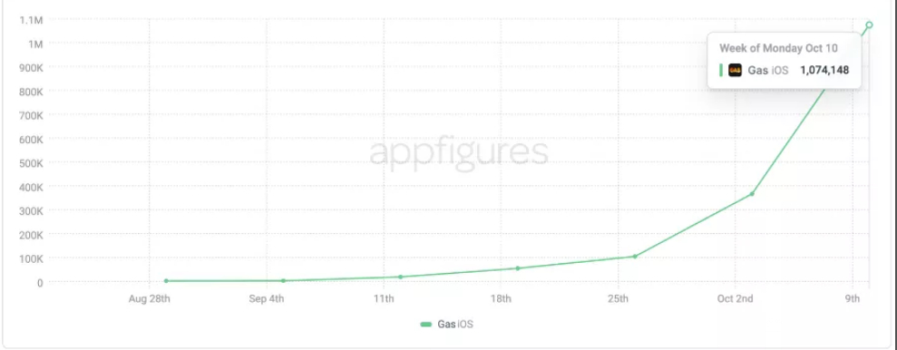 更令人业界震惊的是,这款APP自诞生到屠榜,仅用了短短两个月时间。再严谨一点,Gas从8月底上线初始版本,经过两次更新改名后于9月29日正式上线。也就是说,这款APP自上线到爆火仅用了一个月左右的时间。