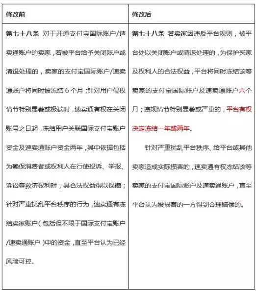 同时,为保护买家用户的合法利益,平台将修改平台规则第七十八条,延长卖家因为店铺违规情节严重被冻结或关闭时,平台可冻结其提现功能的期限(修改请见公告附表)。修改后的平台规则自2018年6月1日起生效。