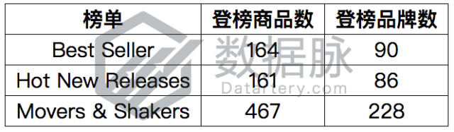 根据上周 Movers & Shakers 榜单上各个品牌下商品的登榜次数,我们对登榜的品牌进行了排序,其中排名靠前的五个品牌如下所示:
