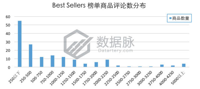 在本次分析,登榜Toys & Games品类Best Sellers榜单的商品中,单个商品拥有的最大评论数为32481.0条,最小评论数为0.0条,平均评论数1515.33条,评论平均星级4.34星。骆探长(shujumai.com)发现,相比上期分析,平均评论数稍有波动,但评论星级减少0.01星。在上榜商品中,有33.54%的商品评论数低于250条;还有部分商品评论数在250-500条之内,占比达16.46%;此外,该周有4款商品的评论数在5000条以上,占上榜商品数的2.44%。