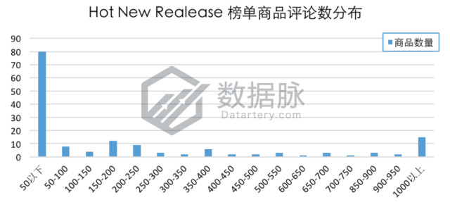 在本期Toys & Games品类Hot New Releases榜单分析中,单个商品拥有的最大评论数为5203.0,最小评论数为0.0条,平均评论数359.34条,评论平均星级4.27星。骆探长(shujumai.com)注意到,本期榜单商品的平均评论数大幅度上涨,但平均星级减少0.09星;其中,大量商品评论数在50条以内,占比高达49.69%;同时,在登榜的商品中有15款商品评论数在1000条以上,占比达9.32%。