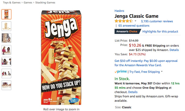 在Toys & Games品类的Hot New Releases榜单分析中,品牌Hasbro的抽积木游戏连续稳据榜单前三,三度登顶榜首,以平均排名1.71位列综合排名第一;
