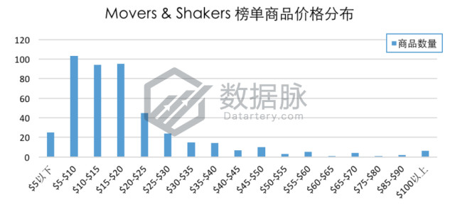 在Toys & Games品类Movers & Shakers榜单分析中,商品最高价$399.99,最低价$0.4,平均价格$21.61。骆探长(shujumai.com)发现,与上期分析相比,平均价格出现小幅度上涨;其中价格位于$5.00-$10.00区间内的商品数量较多,占比达22.06%;另有20.34%的商品的价格在$15.00-$20.00以内;此外,多达6款商品的价格在$100以上,占比1.28%。