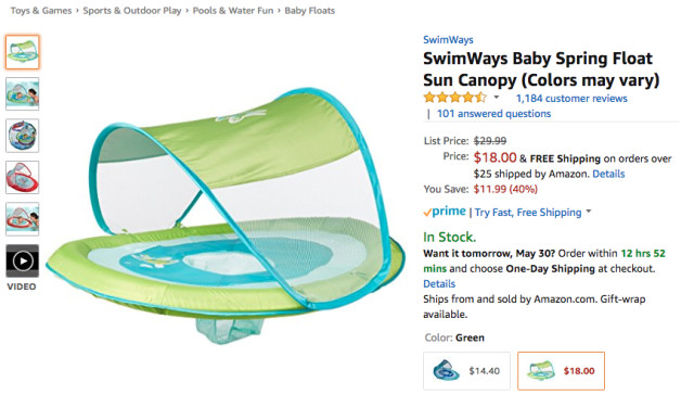 品牌SwimWays的遮阳浮床登榜四次,以平均排名42.5位列综合排名第五,其单日最大涨幅为130.0%。