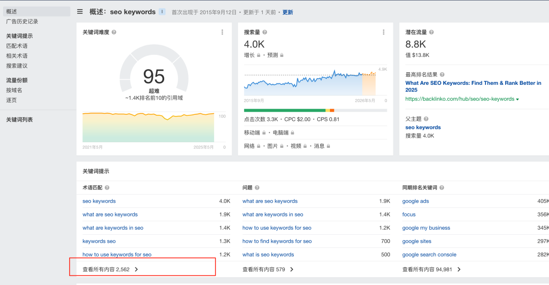 我知道大部分人对于关键词调研的工作真的是很头痛,对于这部分人,你们还是要感谢AEO的到来,不用再对着关键词列表痛哭流涕了。