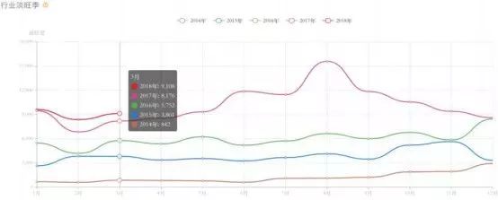以不同年度,针织和T恤、旺季的市场需求来看,2014-2016年该行业的市场需求较为平稳,未出现较大波动,所对应的市场发展机遇不大。显而易见,2017年开始,产品的需求趋势出现大范围波动,需求总体看涨且主要的销售高峰集中在8月。则此时,卖家一旦瞧准并进入产品增长期的话,其所催化的后期效益便较为可观。
