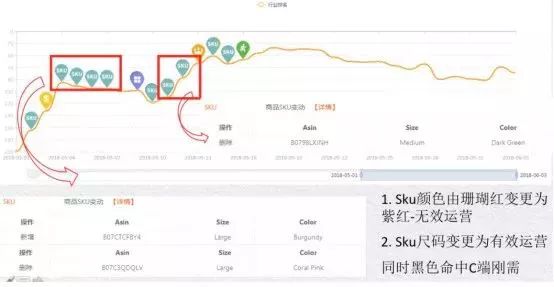 根据产品不同颜色、尺寸属性所对应的评论数量和购买趋势来看,判定为占比较高的蓝色和M码是市场真正所需要的,带有该两种属性的SKU较为适合做引流款,且未来有可能是产品的利润款。