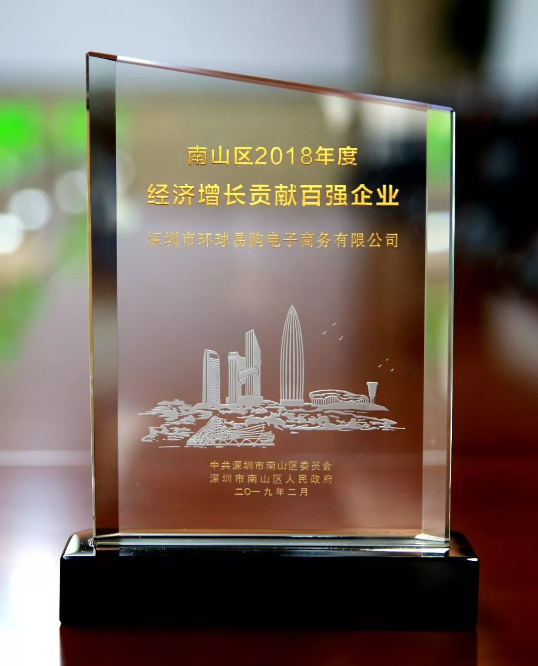 激动激动!胖编要给大家带来一个好消息:环球易购被深圳市南山区人民政府授予“南山区2018年度经济增长贡献百强企业”称号!