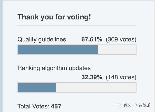 Barry Schwartz近日在SMX West大会上主持题为《Machine vs. Man: What Really Matters For SEO Success》的座谈会,抛出了这个问题:对于我们SEO人来说,是学习Google的搜索质量评估指南重要,还是研究算法更新更重要?调查问卷显示,多数人选择了前者。