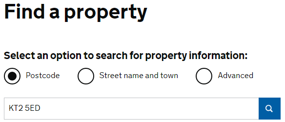 打开网页后点击绿色按钮 Start now,然后输入邮编找到房产,例如下图: