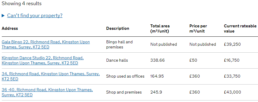 搜索后可查看到该邮编地址下的商业房产的征税估定价值: