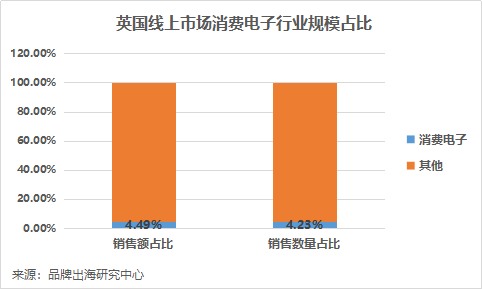 品牌出海研究中心通过线上销售数据分析,得出英国线上市场消费电子行业的规模情况,其销售额占比整体线上市场的4.49%,线上销售数量占比整体线上市场的4.23%,均价在42英镑左右。2017年英国脱欧,使得其电子产品消费需求疲软,整体订单量出现下降。