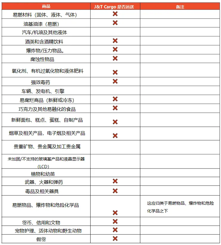 【物流服务】J&T Cargo 禁运品