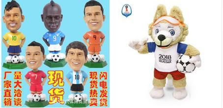 4.足球明星摆件、吉祥物玩偶、靠枕、抱枕、胸章、大力神杯模型: