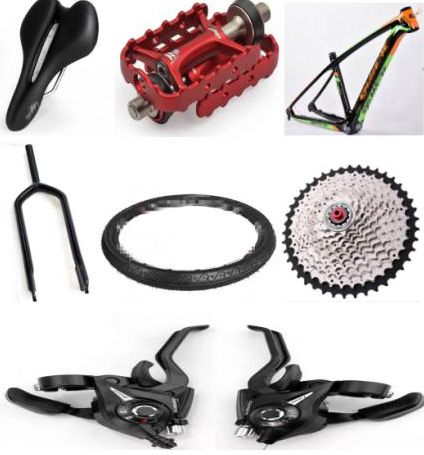 主要招募的配件:车架、车胎、脚蹬部件、前叉组件、链条、飞轮、变速器、车把、车座等。