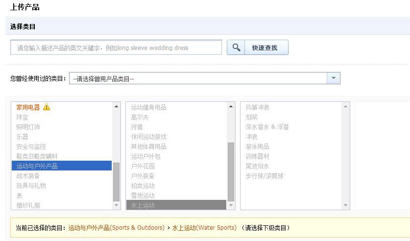 水上运动上传类目如下: