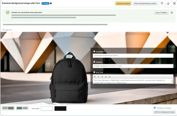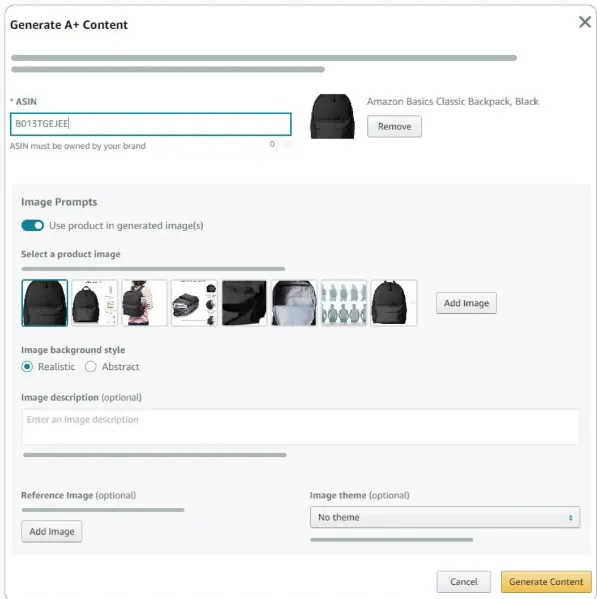 图片方面也别将就。好图片能让转化率提升15%-30%。现在用亚马逊的AI图文工具,上传白底图就能自动生成场景图,4步搞定A+页面。