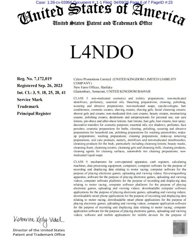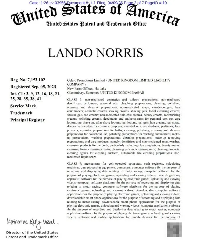【26-cv-03956】F1赛车世界冠军Lando Norris维权!跨境卖家速看避雷!