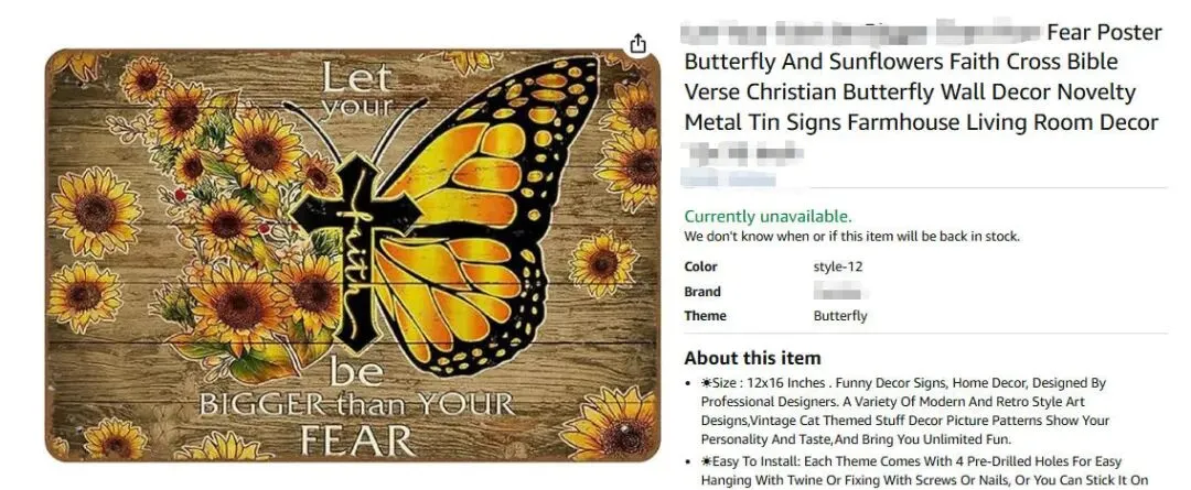 本案维权的作品是XUAN LIU的一幅蝴蝶十字插画,作品以十字结构为基底,巧妙融合蝴蝶舒展的羽翼,既保留了宗教符号的庄严感,又注入自然生命的灵动气息,在家居装饰类目中十分受欢迎。