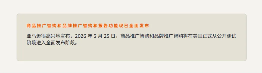 根据官方最新通知,自2026年3月25日起,亚马逊美国站的Prompt广告(又称Rufus广告)在美国市场结束公开测试(Open Beta),正式转为全面可用(General Availability)。
