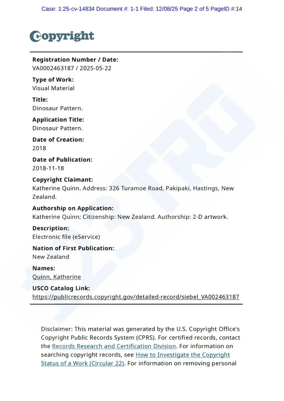 原告仅公开了版权证书,小编在spoonflower找到相关图片(仅供参考)