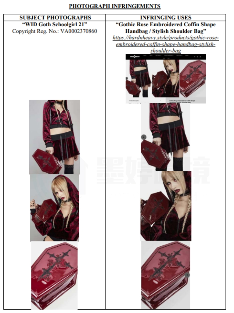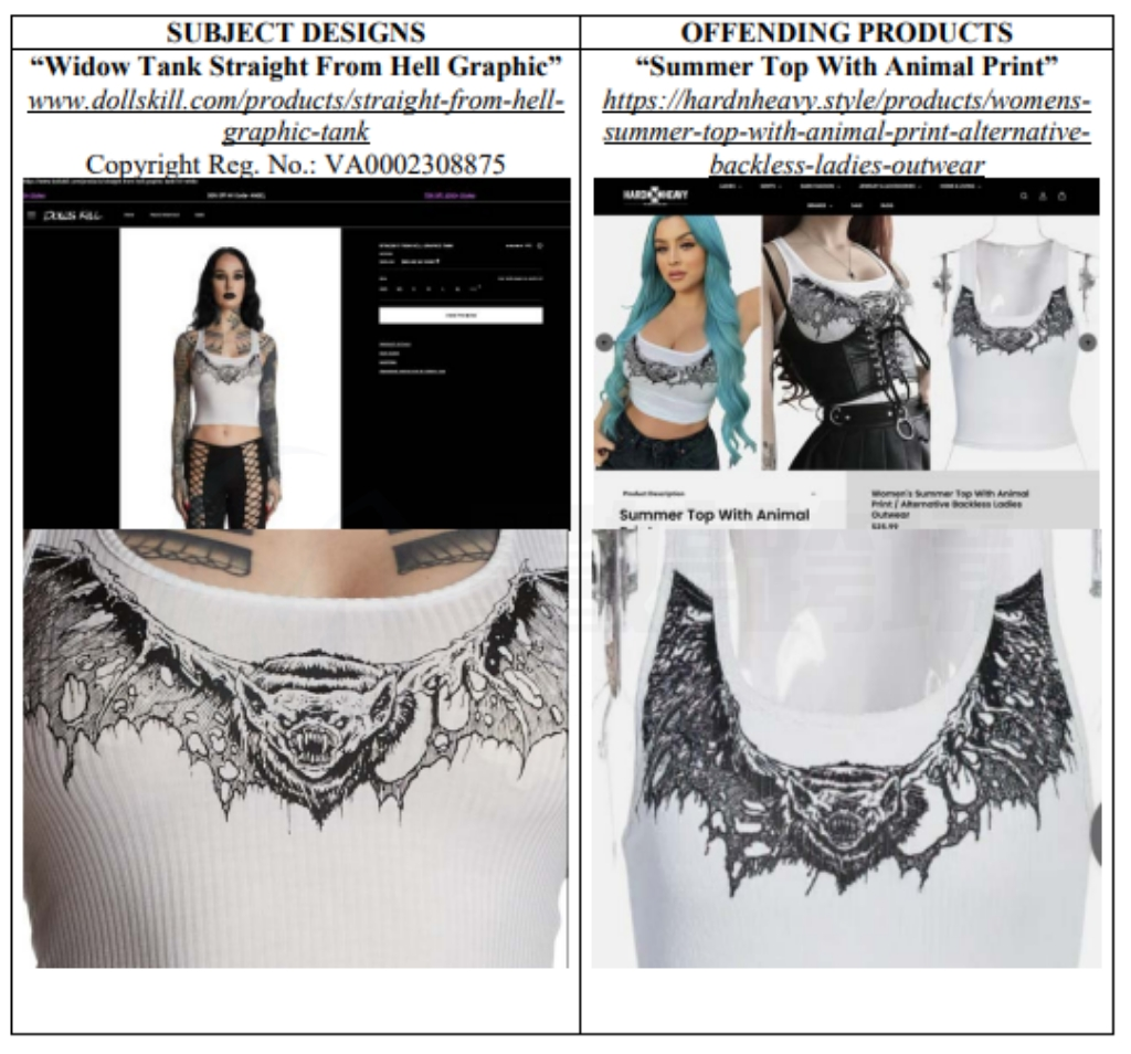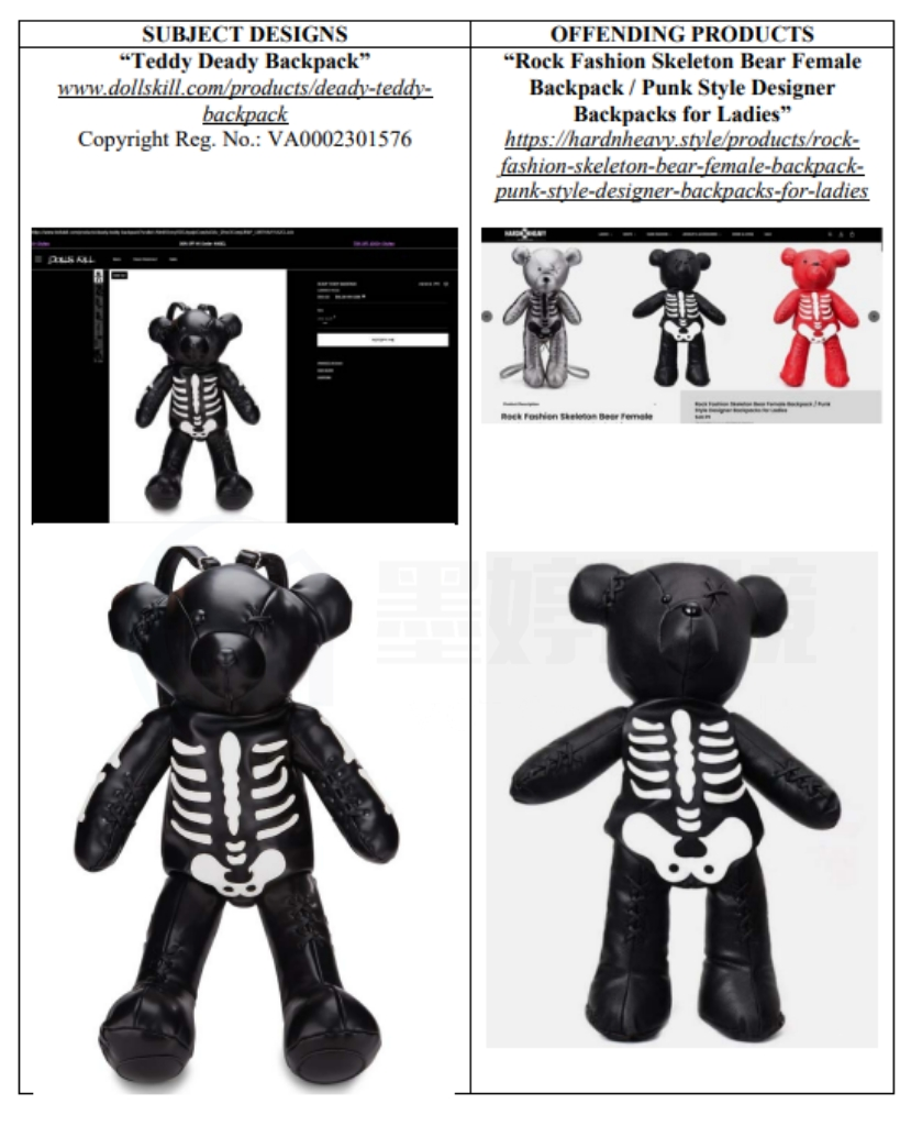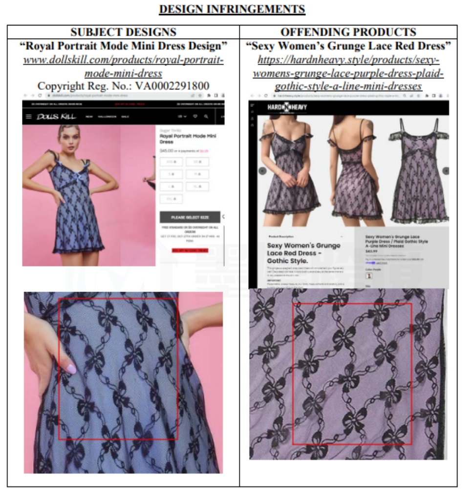 Dolls Kill, Inc. 旗下的图案、印花及部分服装设计均已进行版权保护,具有很强的识别度。在跨境销售相关产品时,如果未经授权使用这些元素,容易被判定为侵权。卖家在选品上架前一定要做好图样核查,避免不必要的风险。