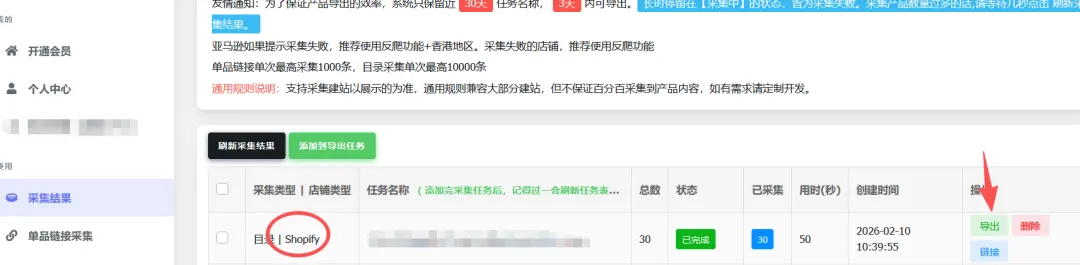 把spy的网站添加到采集列表,稍等片刻提示采集完成即可导出。