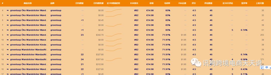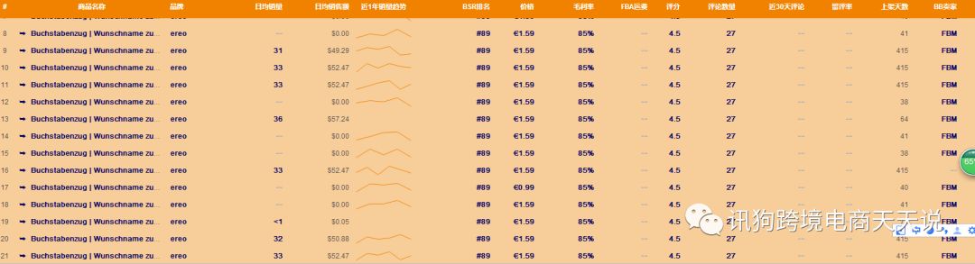 可以看到这一屏的相关商品的上架时间,价格,BSR排名,还有最重要的销量及趋势。
