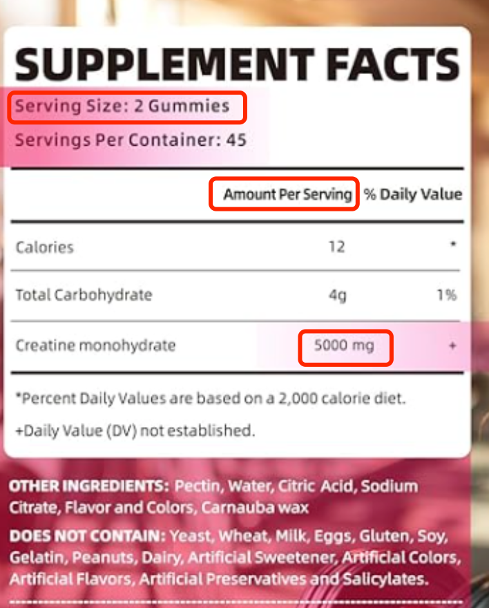 以该品牌旗下一款月销量超50,000件的肌酸软糖为例,产品包装上清晰标注每份(两粒软糖)含5000毫克肌酸一水化合物,也就是每粒软糖应含2500毫克肌酸。然而,实验室检测结果却让人意外——这款软糖中竟完全不含肌酸成分。从常理推断,每粒软糖实际总重量甚至都达不到2500毫克。这种明目张胆的虚假标注行为,严重损害了消费者的权益。