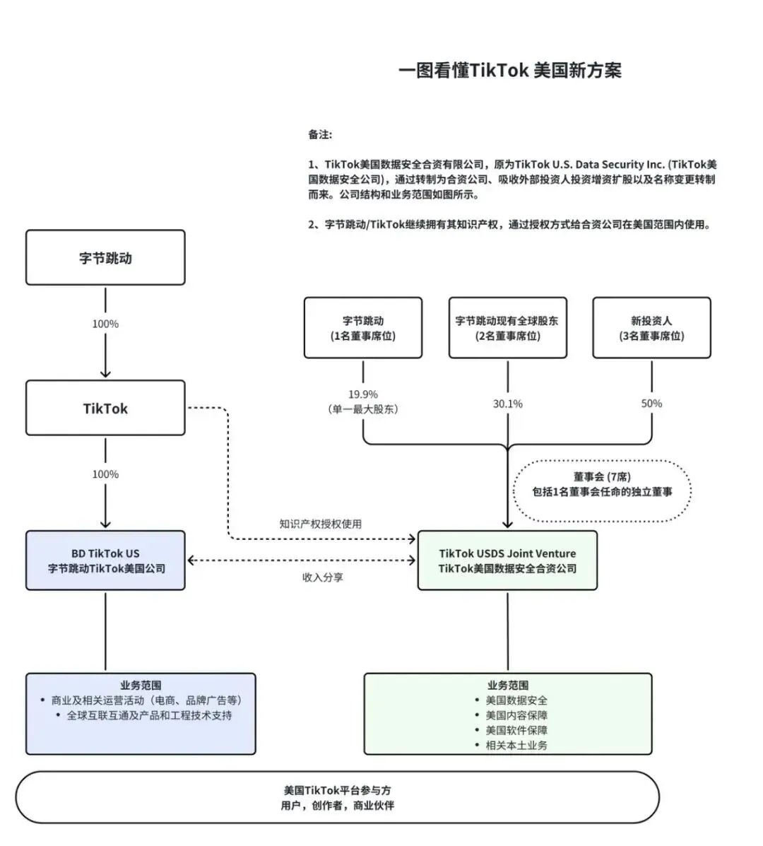 上述公司业务安排,意味着TikTok美国方案正式落地,超过2亿美国用户能够继续使用TikTok。相关公司的设立及业务划分,与此前国内媒体披露的方案一致。