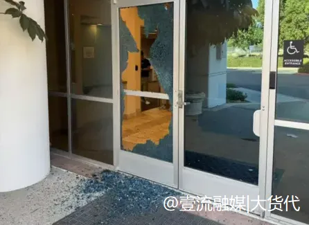 图源纽约邮报,被气枪打碎的办公室玻璃门