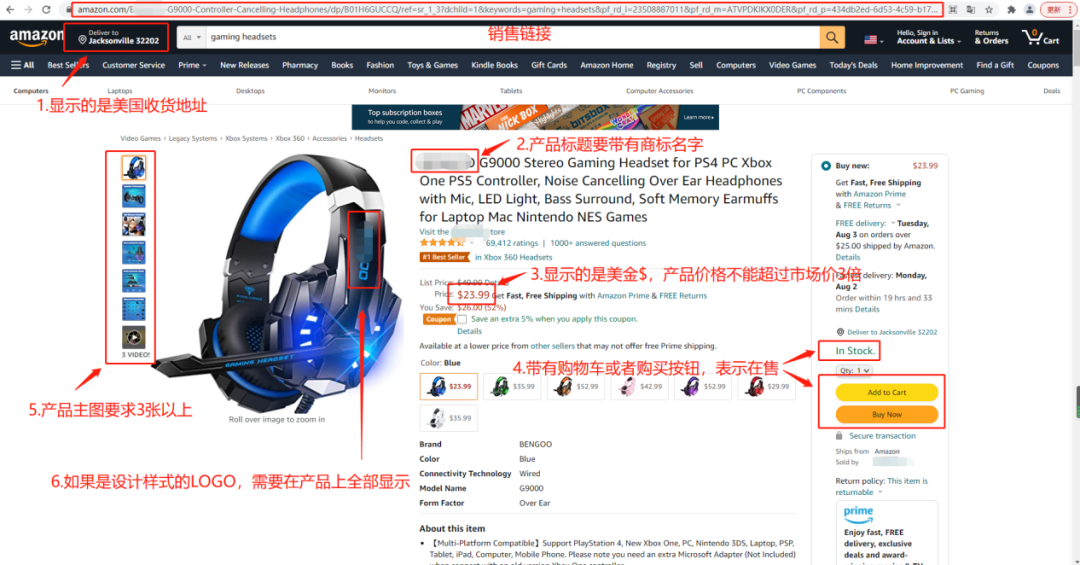 (1) 显示在亚马逊销售的链接或者LOGO;