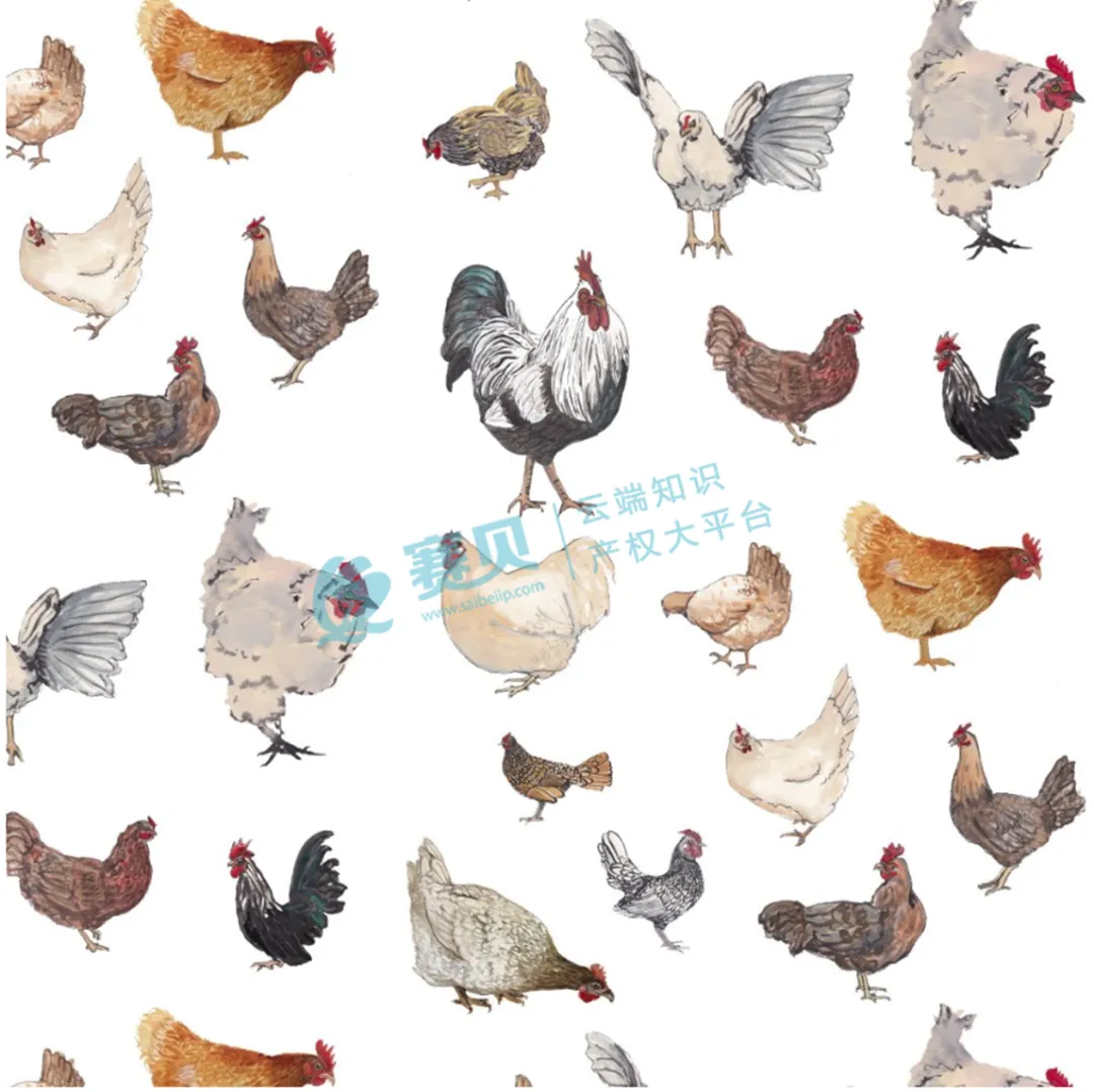 本次维权涉及Norma Safford Vela的1件已注册2D艺术作品,登记号:VA 2-468-986,作品名称为《Chicken Happy》(中文可译为《快乐小鸡》