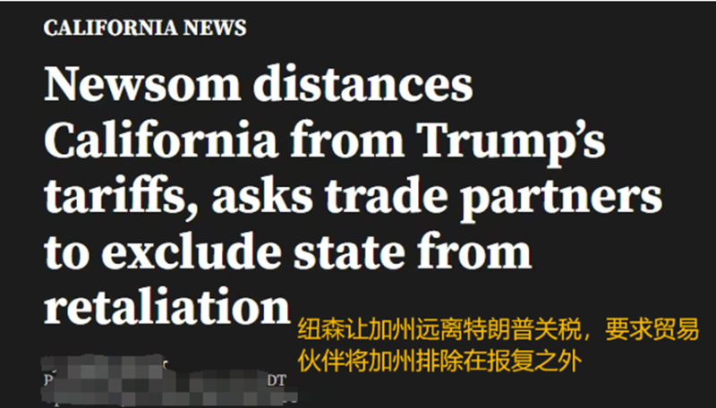 在针对国际贸易问题上,加文·纽森也多次与特朗普关税政策割席,呼吁各国在制定反制措施时,将加州的商品排除在外。