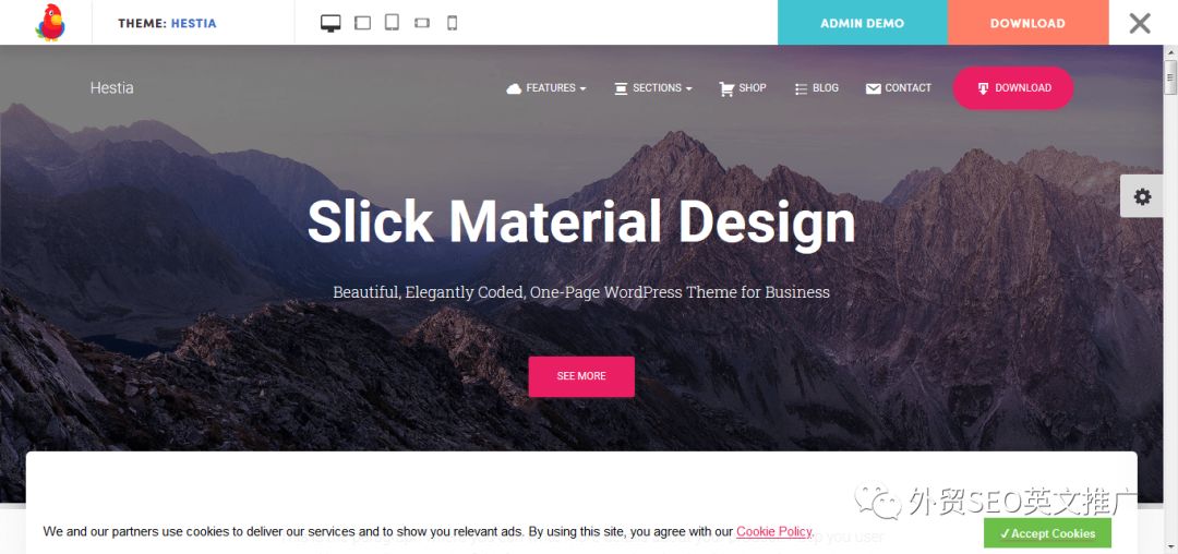 模板地址:https://themeisle.com/demo/?theme=Hestia