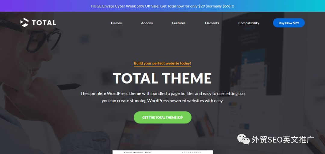 第一次接触这个模板是刚刚创业的时候在淘宝上购买的,后面每次跟淘宝店家要更新很麻烦,所以干脆就自己购买了正版的,方便自己更新下载使用。整体模板简洁大方,我挺喜欢的,包括sdwebseo的官网也是用这个模板搭建的。当初选择的这个模板做我们的官网。主要看中了这个模板的博客文章模块。这个模板我知道大概就有5年了,发展到现在大概有40种样式可以选择。编辑器结合了Wordpress的Customizer和Visual Composer,使你很好的构建页面。模板的作者考虑了大部分不同的领域的B2B公司,小型企业,在线B2C商店,律师,代理,婚礼策划师,托管公司,非营利组织,博客作者等等。支持 bbPress 2.5.x, Easy Digital Downloads, Elementor, Events Calendar, Events WooCommerce , WPBakery Page Builder , WPML .