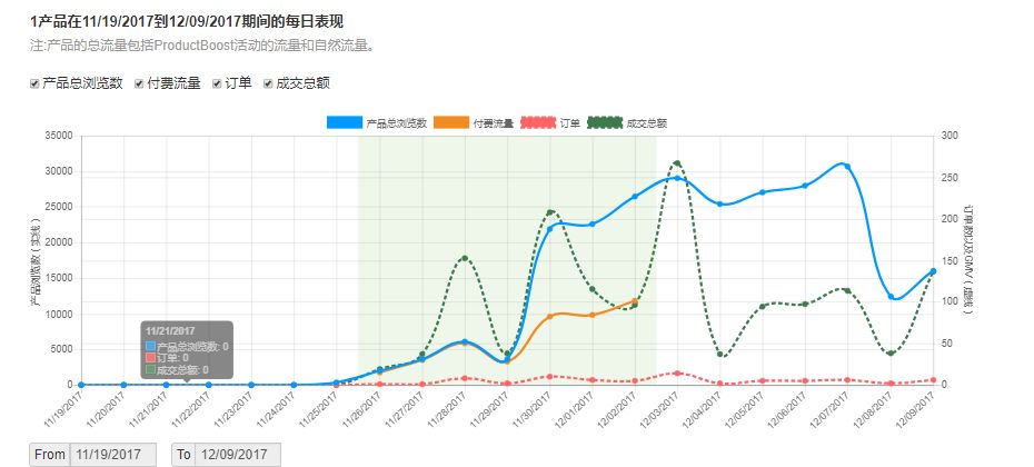 产品进入成熟后,就需要更加关注竞争对手的情况了,在产品流量及销量出现下滑的时候,及时增加ProductBoost活动的开展,短时间增加流量及销量,保持产品的市场地位,避免市场份额被蚕食。