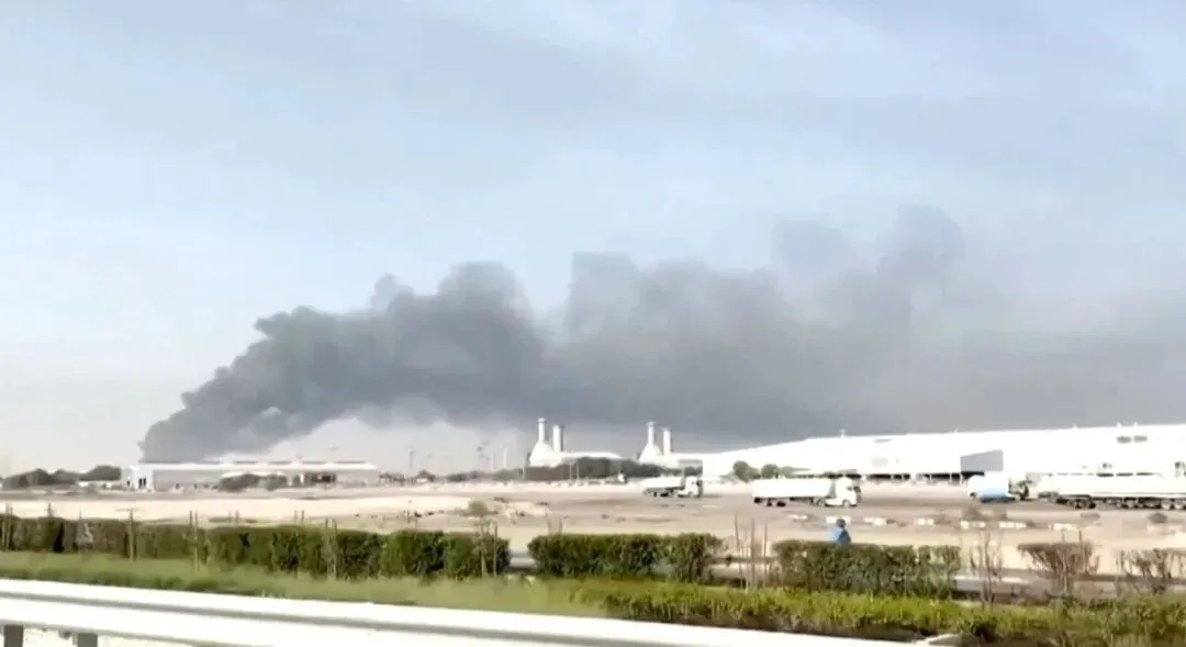 杰贝阿里港口设施持续冒出浓烟