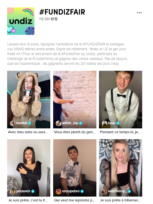 为此,Undiz通过创建名为#FundizFair的品牌标签挑战赛来实现目标。他们希望用户能够通过TikTok社区创作自己的跳舞视频,来表达他们的创造力,然后打出“UZ”的标志,并变成一套有趣的服装——就像Undiz连体衣一样。
