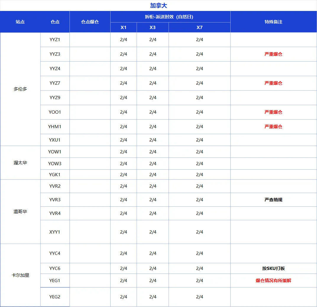 卡尔加里:YEG1爆仓有所缓解,YYC6需按SKU打板