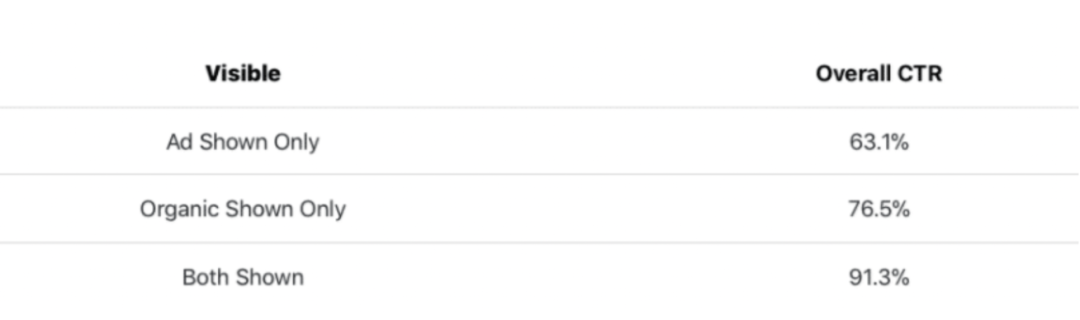 当付费和自然结果同时出现时,消费者有91.3%的机率点击其中一个。