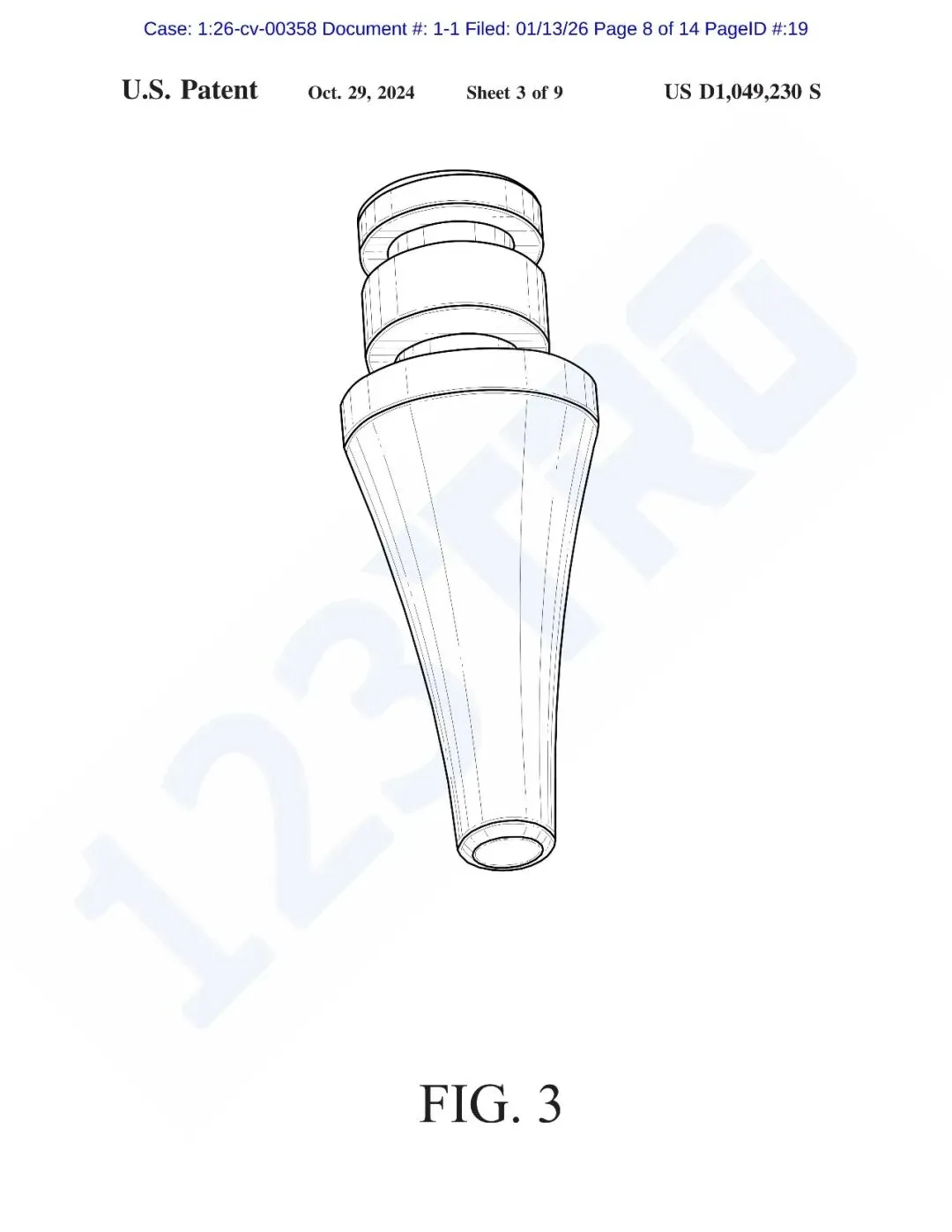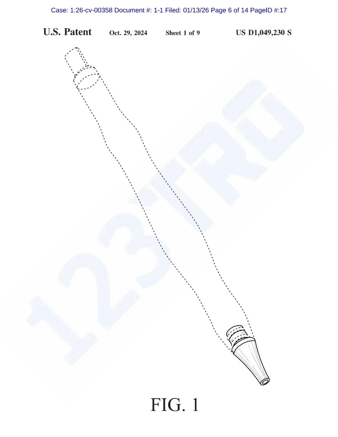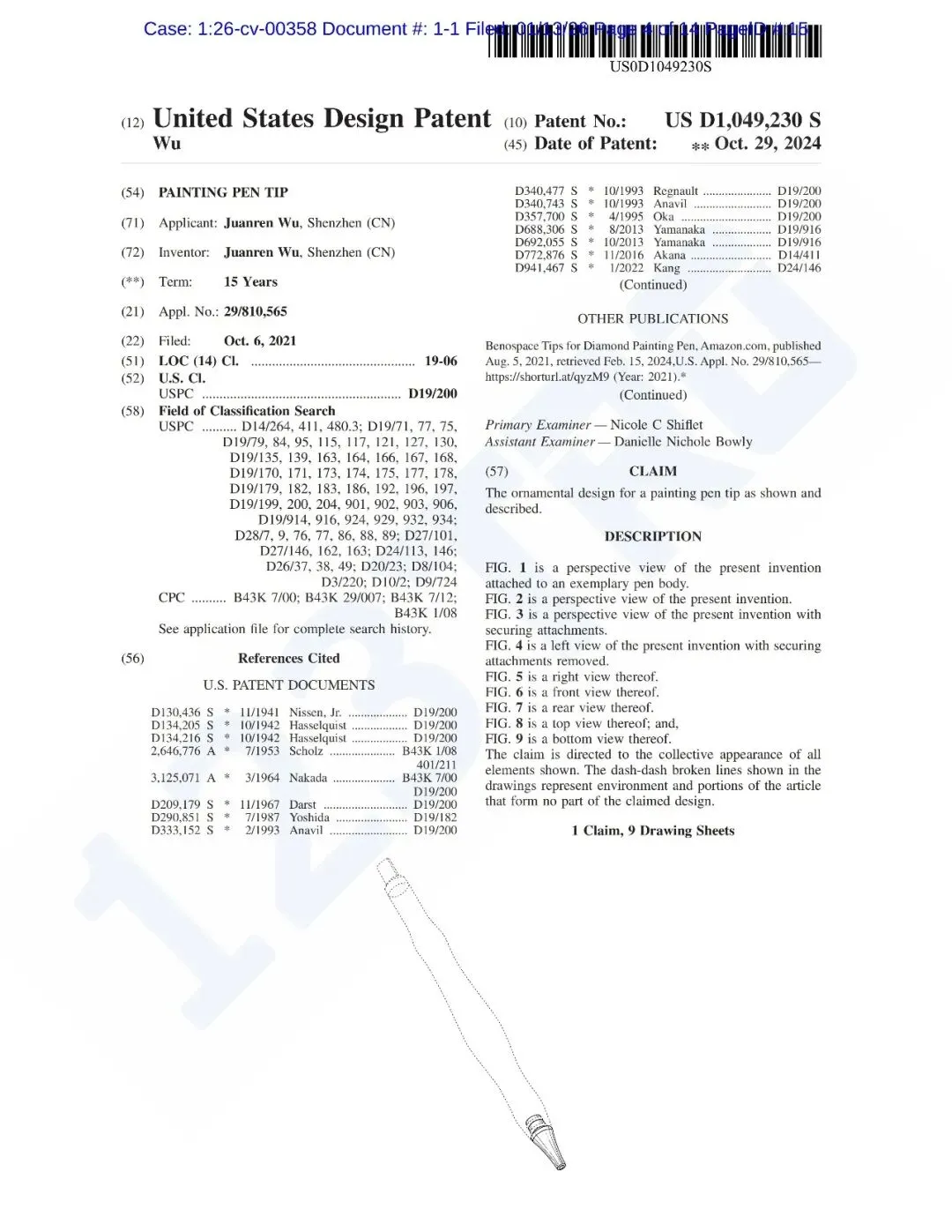 涉案专利USD1049230S1于2024年10月29日正式下证