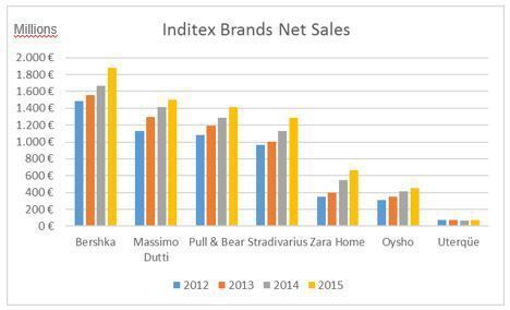 (2012-2015年Inditex品牌旗下各品牌净销售额)