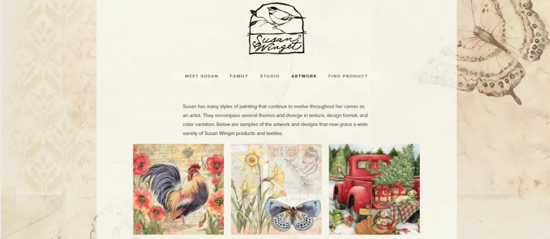 Susan Winget 是美国知名艺术家,其作品以 “温暖易懂” 为标志性风格,灵感源自北卡罗来纳州 80 英亩农场的动植物。自 1987 年起与 Lang Graphics 合作授权 artwork,至今仍是该公司顶级畅销艺术家,作品广泛应用于日常消费品,如日历、节日贺卡、文具、家居礼品等。