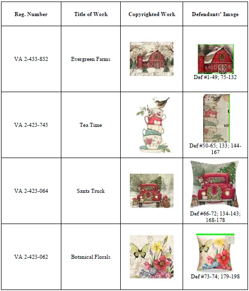 【25-cv-01606】Susan A Winget 版权TRO突袭,圣诞树、红卡车、花卉、茶杯这些元素一碰就侵权!