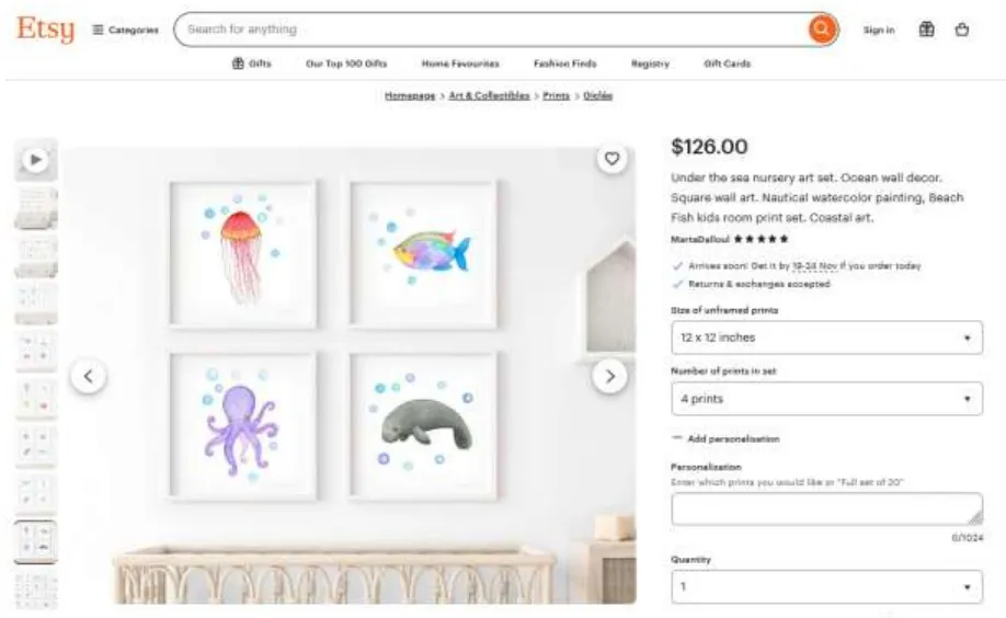 产品官网:https://www.etsy.com/listing/1181771460/under-the-sea-nursery-art-set-ocean-wall?