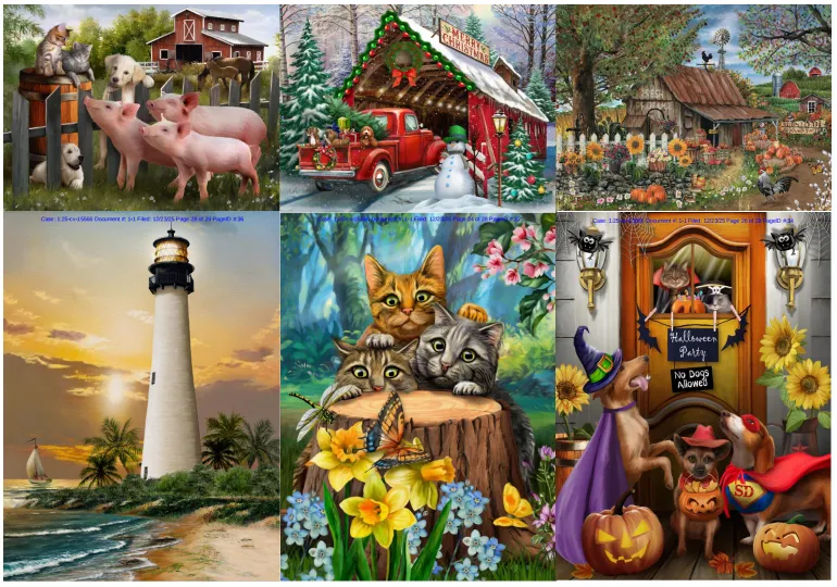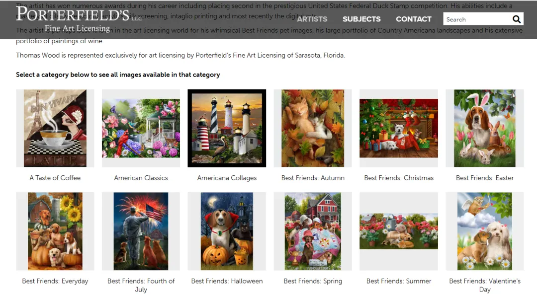 原告Thomas Wood是一名艺术家兼设计师。Wood在艺术授权领域以他充满奇思妙想的“最佳伙伴”宠物形象、乡村美式风情风景画以及葡萄酒主题画作而闻名。