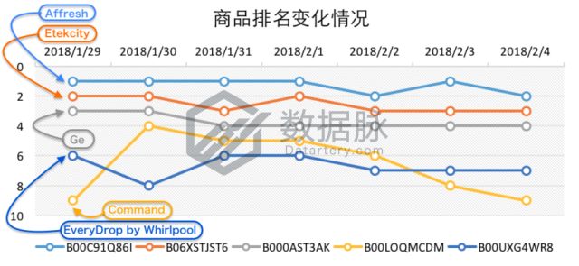 品牌Command的相框无痕贴,榜单排名高开低走,未跌出榜单前十,以平均排名6.57位居综合排名第四;