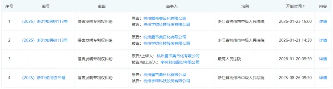 此前,杭州露韦美日化有限公司(以下简称露韦美)起诉杭州宇树科技股份有限公司(以下简称宇树科技)侵害其发明专利权,主张宇树科技赔偿8000万元。