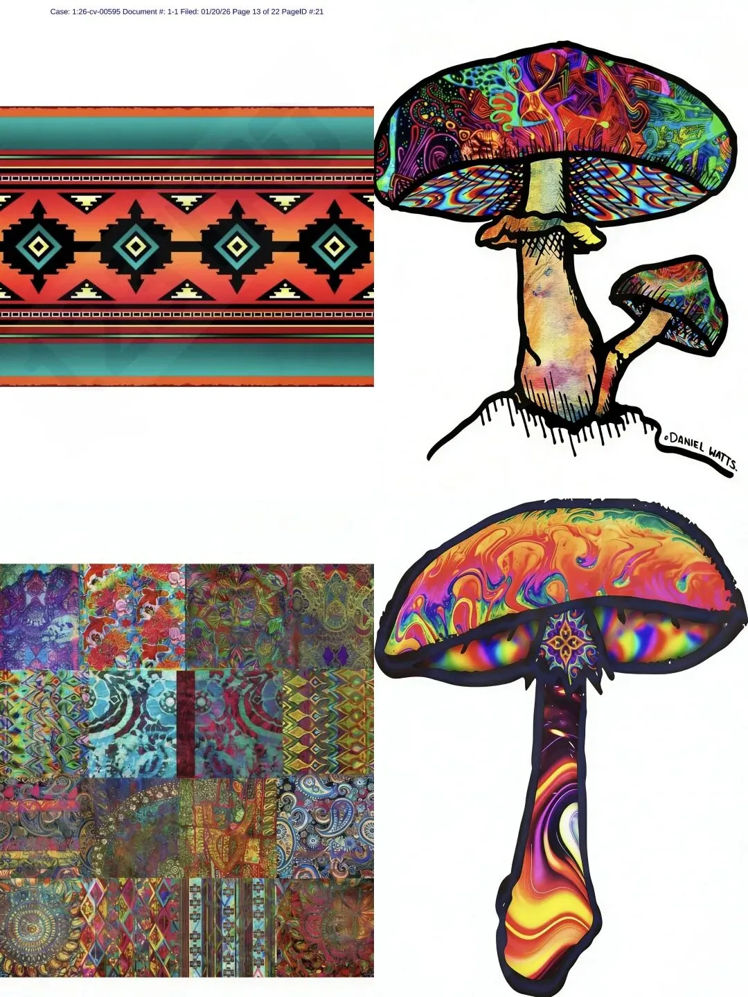 据美国法院官网的最新资料显示,我们关注Keith律所代理了多起新版权图维权案件,分别是:Daniel 蘑菇&民族系列插画版权【26-cv-00595】和Gloria 公鸡&雪人主题插画【26-cv-00594】、Olga 卡皮巴拉插画【26-cv-00592、26-cv-00593】、Susan 超现实拼贴画【26-cv-00596】、Balazs 动物拟人插画版权【26-cv-00603】。这些案件详细信息如下: